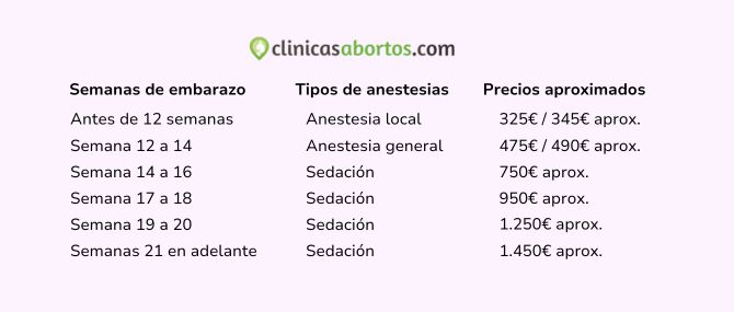 Como norma general, este tipo de aborto se realiza con anestesia local incluida en el precio. Sin embargo, si la mujer prefiere una sedación ligera o intravenosa, la interrupción del embarazo puede tener un coste adicional de entre 50 € y 100 €.