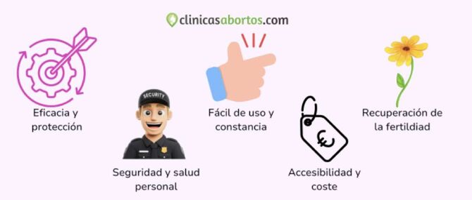 Accesibilidad y coste: Algunos métodos, como el condón o las píldoras, están disponibles en farmacias sin receta. Otros, como el DIU o el implante, requieren colocación por un profesional.