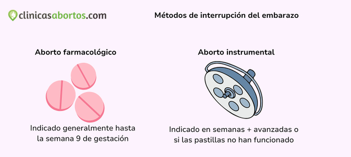 Aborto instrumental o quirúrgico: se utiliza en semanas más avanzadas o cuando el método farmacológico no ha funcionado. Consiste en dilatar el cuello del útero y aspirar el contenido uterino bajo anestesia, siendo un procedimiento rápido y seguro realizado por personal sanitario.