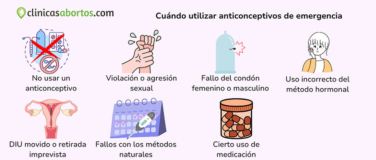 Se recomienda recurrir a la anticoncepción de emergencia en determinadas circunstancias en las que exista riesgo de embarazo. Entre ellas se incluyen las relaciones sexuales sin protección, situaciones de violación o agresión sexual, o el fallo del preservativo —ya sea por rotura, deslizamiento o uso inadecuado.