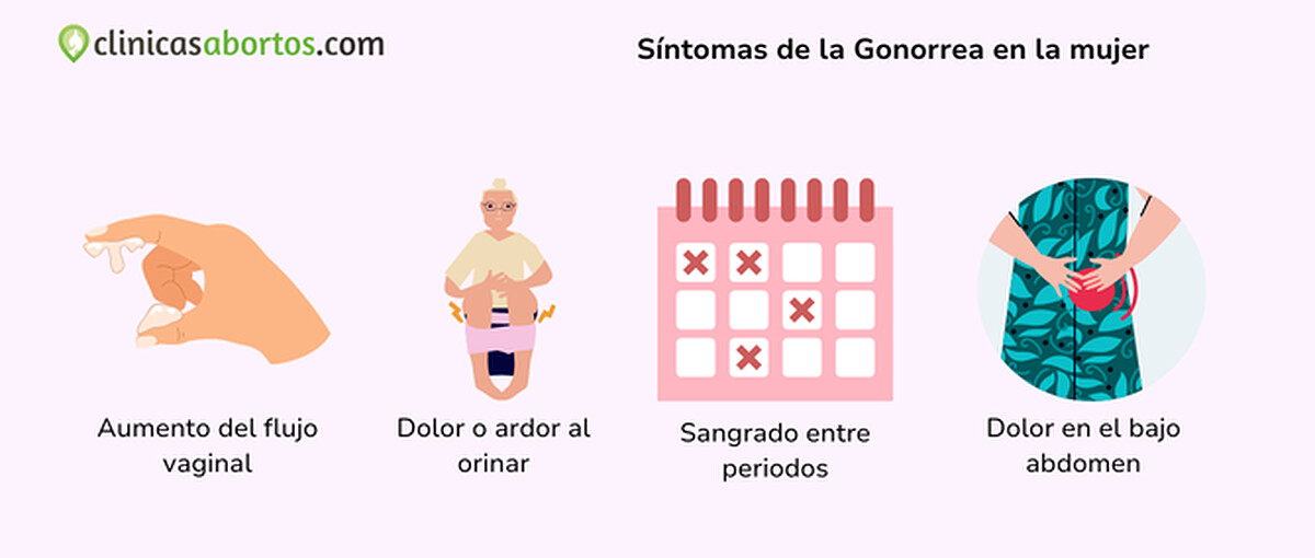 Síntomas de la gonorrea en mujeres: pueden incluir aumento del flujo vaginal, a veces amarillento o con sangre, ardor al orinar y sangrados fuera del periodo o tras las relaciones sexuales. También puede aparecer dolor en el bajo abdomen y, en algunos casos, dolor de garganta.