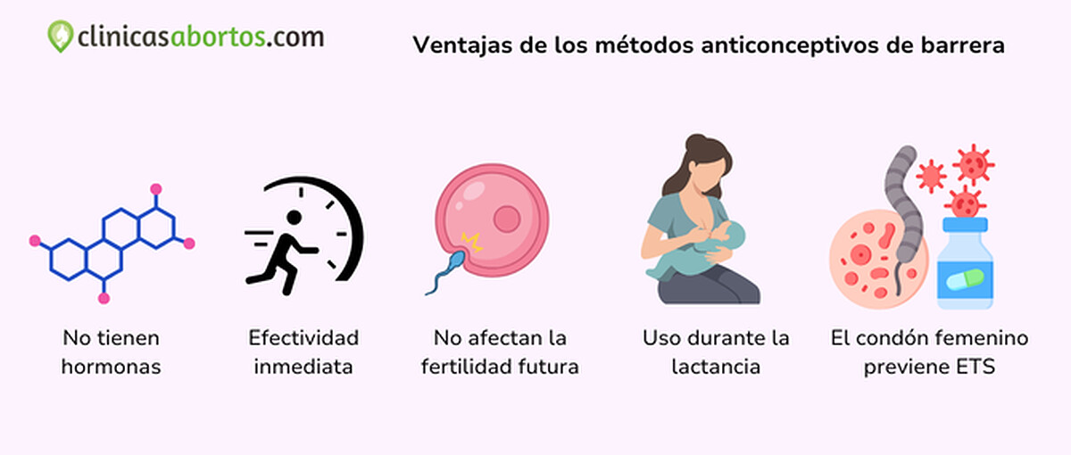 Los anticonceptivos de barrera son una opción no hormonal que ofrece protección inmediata y no afecta la fertilidad futura. Son seguros durante la lactancia y permiten un control directo en el momento de la relación sexual. Además, el preservativo masculino y femenino también protegen frente a infecciones de transmisión sexual (ITS), proporcionando una doble protección. Algunos estudios sugieren que podrían contribuir a reducir el riesgo de ciertos tipos de cáncer de cuello uterino, aunque aún se necesita más investigación.