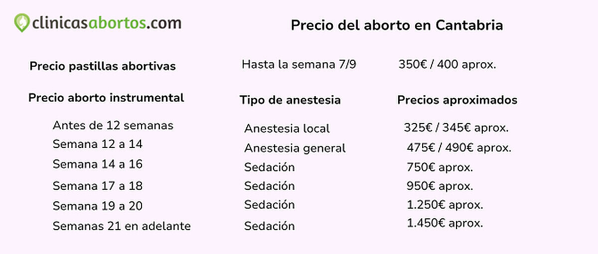 03/02/2026 | Abortar en CantabriaAborto con pastillas: El precio suele situarse entre 350 € y 400 €. Es un método eficaz en las primeras semanas de embarazo (aprox. has...